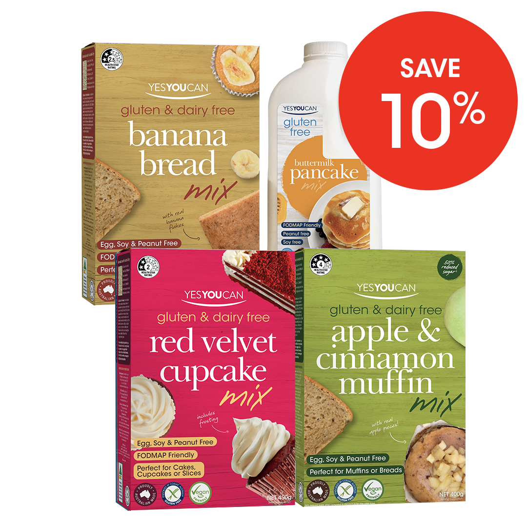 Rediscover classic flavours with the Timeless Treats Box! This delightful bundle includes Red Velvet Cupcake Mix, Buttermilk Pancake Mix, Banana Bread Mix, and Apple Cinnamon Muffin Mix. Perfect for creating gluten free, timeless favourites that never go out of style. Bake, enjoy, and savour the nostalgia!