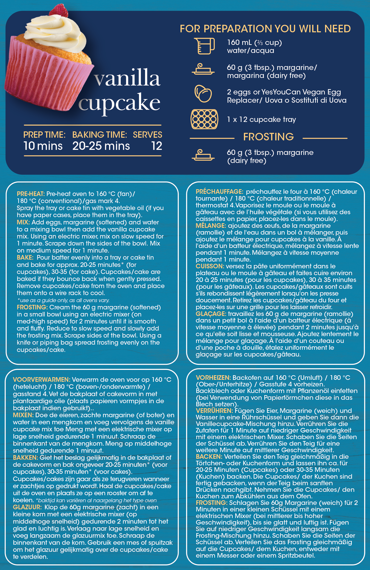 YesYouCan Vanilla Cupcakes are deliciously moist and light and are always enjoyed by all. Easy to make, icing is included in the box, they are perfect for parties. Can be made as cupcakes or as a whole cake and can be made dairy and egg free.